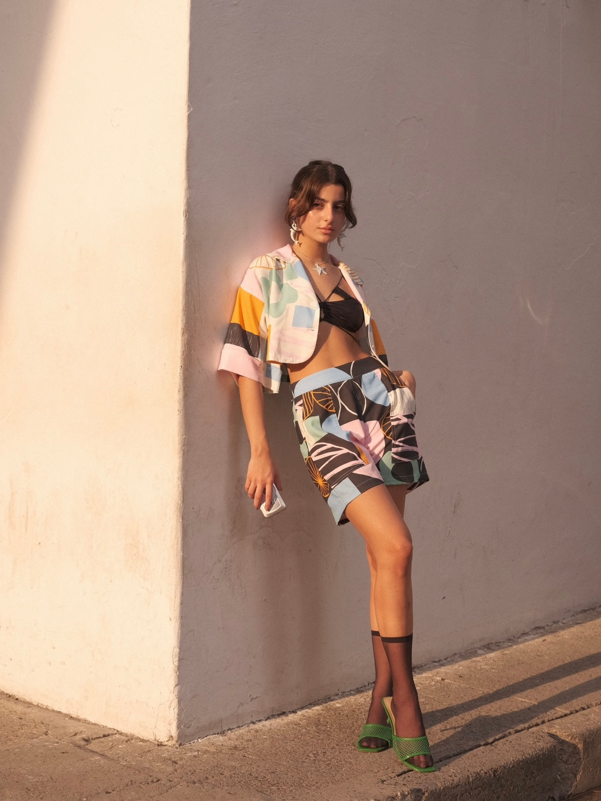 Printed high rise shorts with pockets. Designed and made in Colombia. This piece is part of a special collaboration with the illustrator and creative Laura and the flowers.