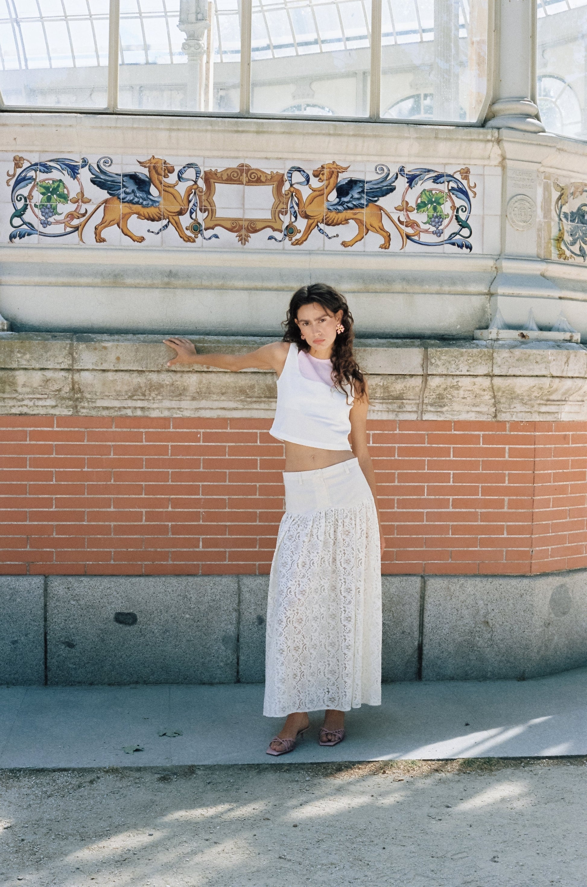 Off-white short top in layering with pink top to tie at the neck. It has side zipper. Designed and made in Colombia.