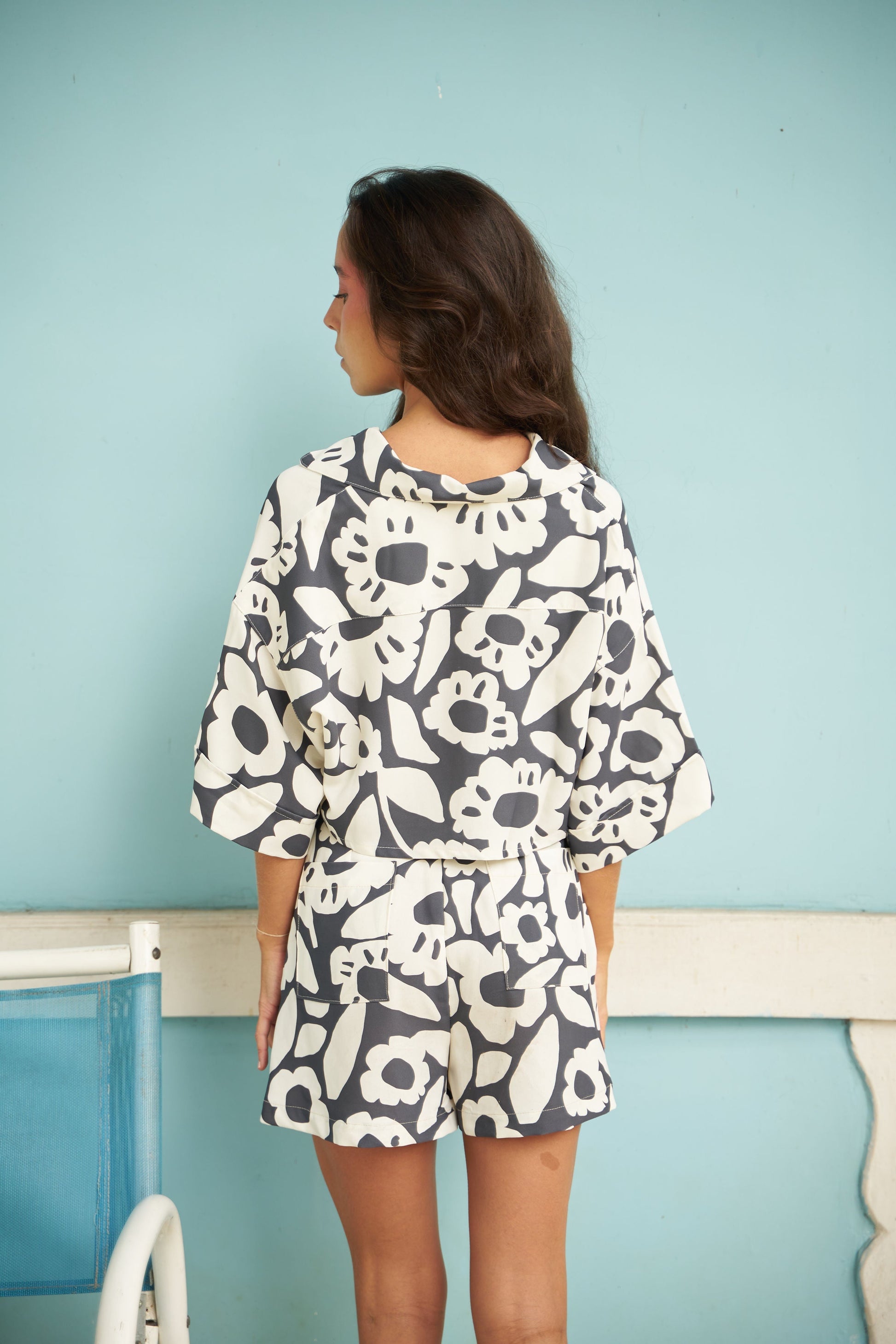 Printed high-waist shorts with side zipper and pockets. Designed and made in Colombia. This piece is part of a special collaboration with illustrator and creative Laura and flowers.